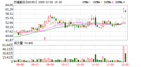 证券日报网讯 12月2日晚间,杰瑞股份发布公告称,截至2025年11月30日,公司通过股份回购专用证券账户以集中竞价方式累计回购公司股份3,087,500股,占公司总股本的0.30%,购买股份的最高成交价为38.65元/股,最低成交价为33.67元/股,成交金额106,229,502.54元(不含交易费用)。